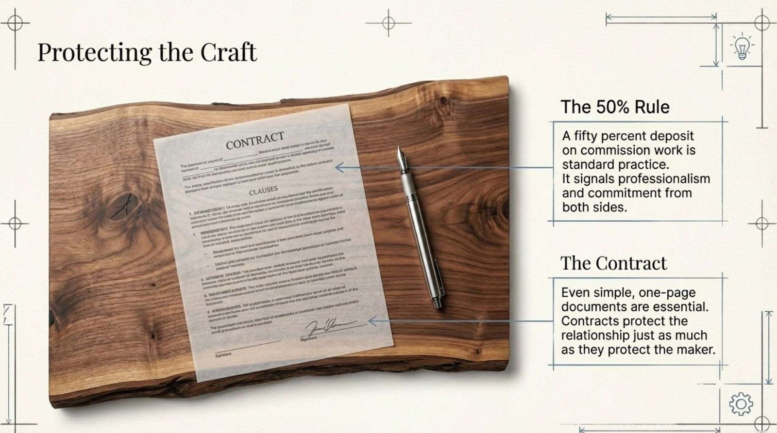 Contracts, even simple one-page documents, protect the relationship as much as they protect the maker.