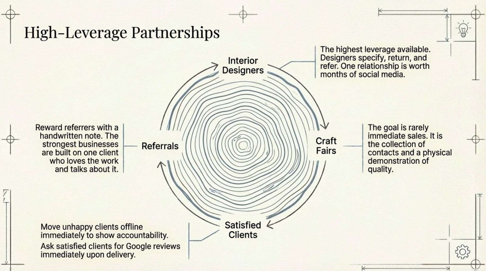 The strongest woodworking businesses are built on this: one client who loves the work and talks about it.