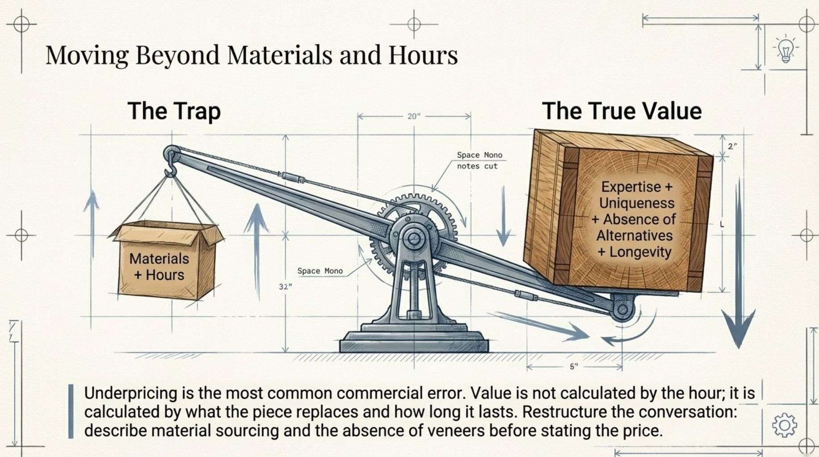 The materials-plus-hours formula ignores three things that buyers might pay for: expertise, uniqueness and the absence of alternatives.