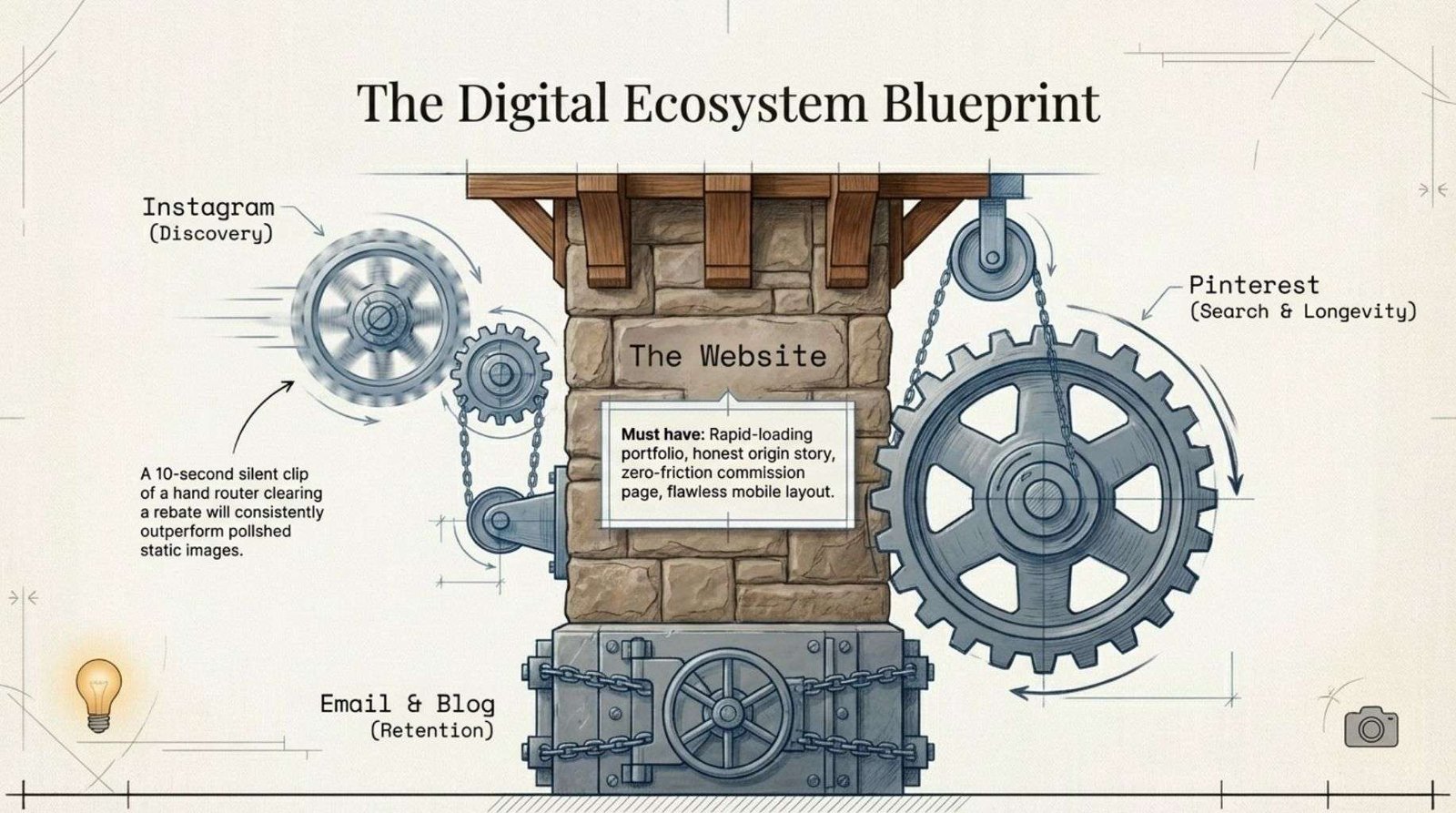 A ten-second clip of a hand router clearing a rebate, posted without commentary, will find more new eyes than a polished finished image shared with a lengthy caption. Pinterest functions as a design search engine and drives traffic silently over months and years.