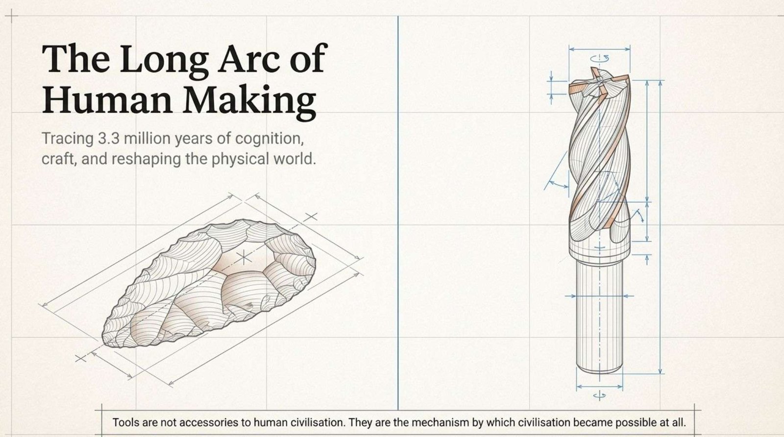 Tools are not accessories to human civilisation. They are the mechanism by which civilisation became possible at all.