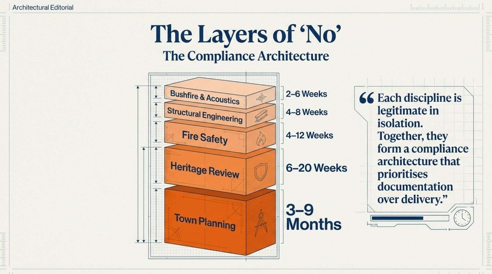 When those components are aggregated, the pre-build regulatory burden on a standard residential project in a major Australian city represents a material share of total project cost.